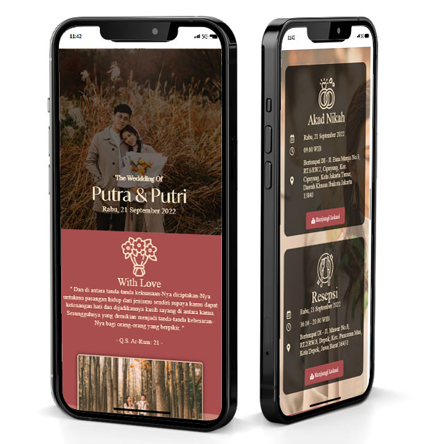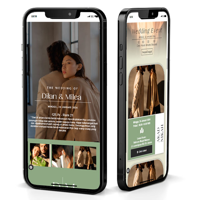 Undangan pernikahan dari Inviti Digital ini memang tak terlupakan. Desainnya begitu elegan dan detail, sesuai dengan apa yang kami impikan. Pelayanan pelanggan yang sangat membantu dan ramah membuat proses pesan undangan menjadi pengalaman yang menyenangkan. Kami sangat merekomendasikan!