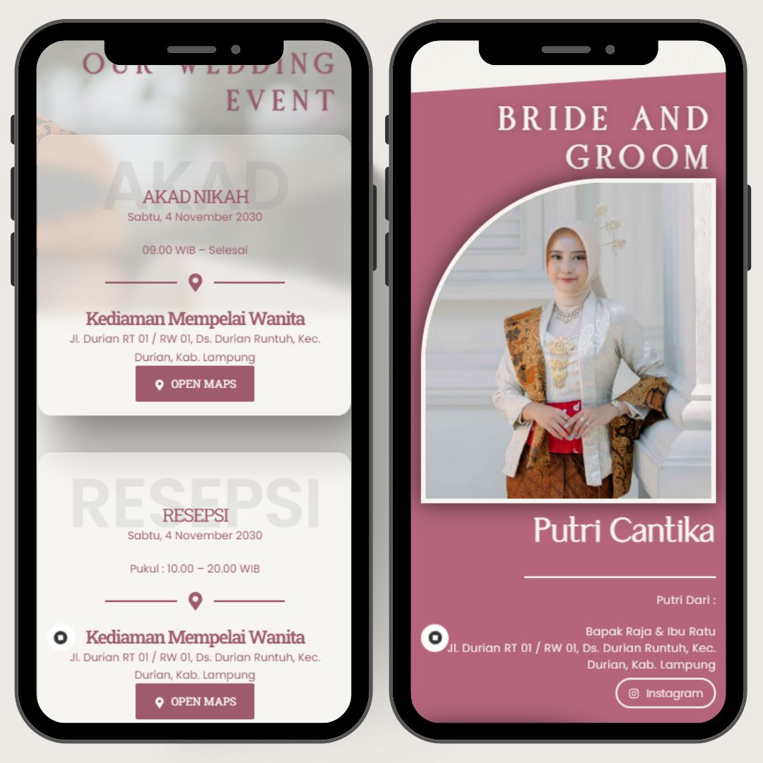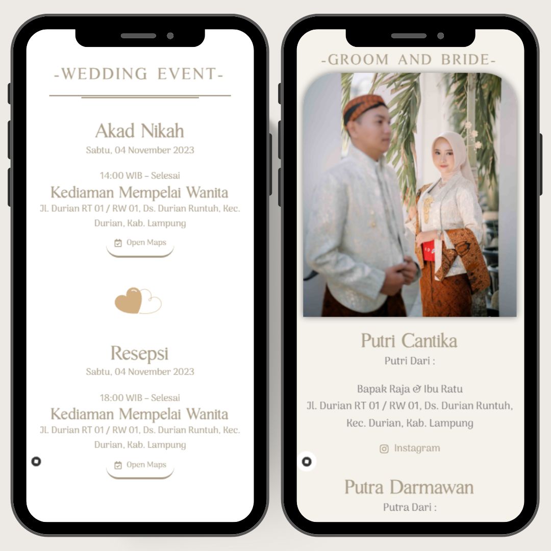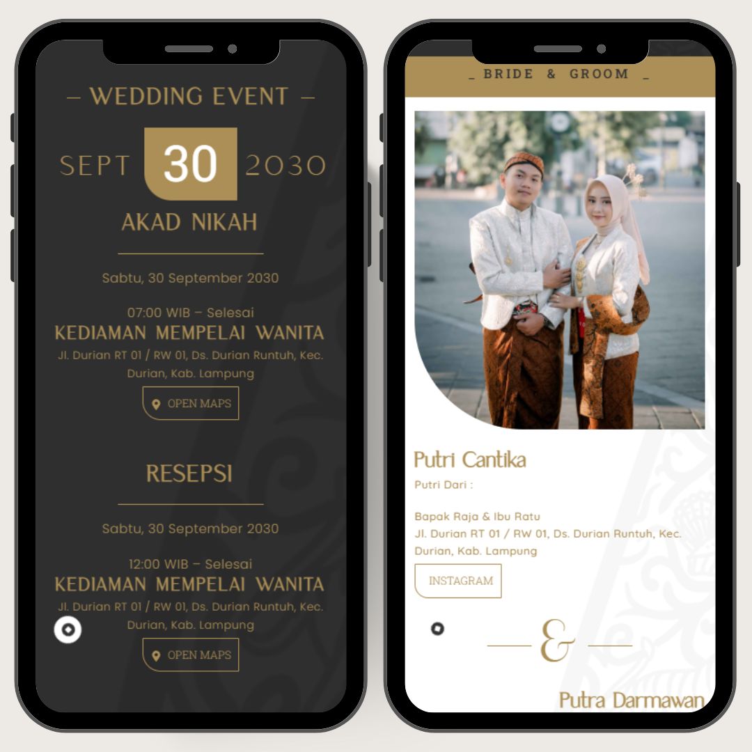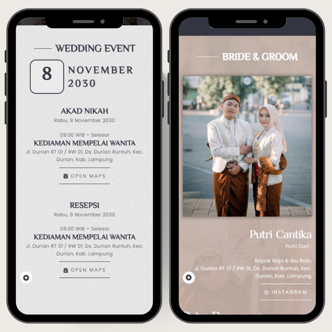Undangan elegan dan profesional untuk mengekspresikan suasana acara pernikahanmu, dan merupakan cara terbaik untuk berbagi undangan dengan cepat dan simpel di sosial media.