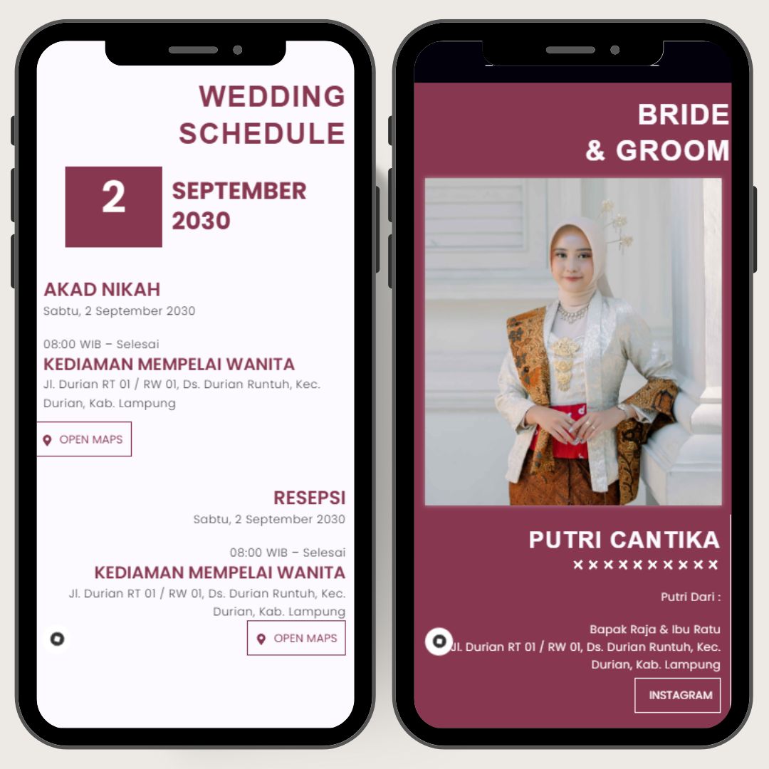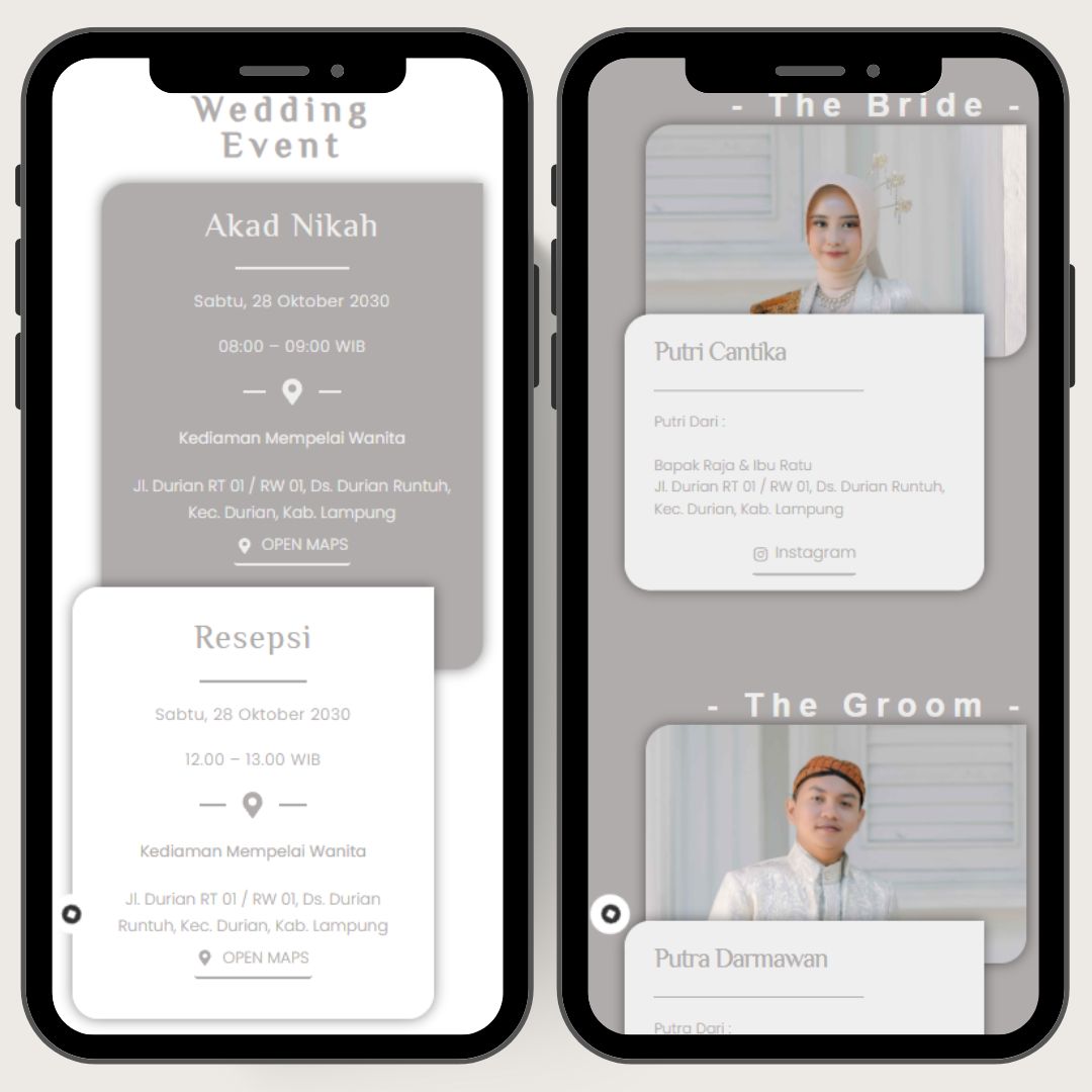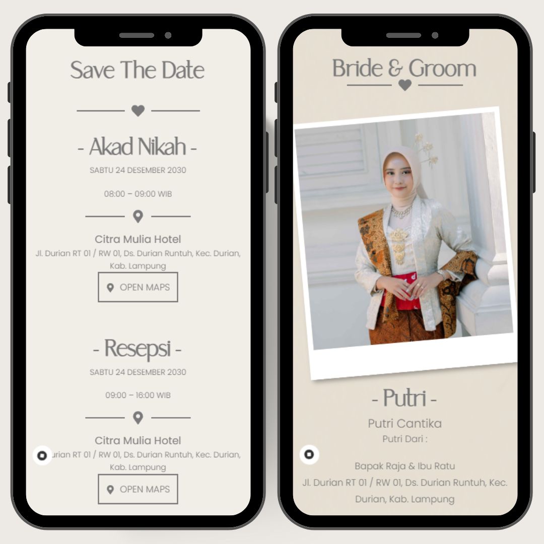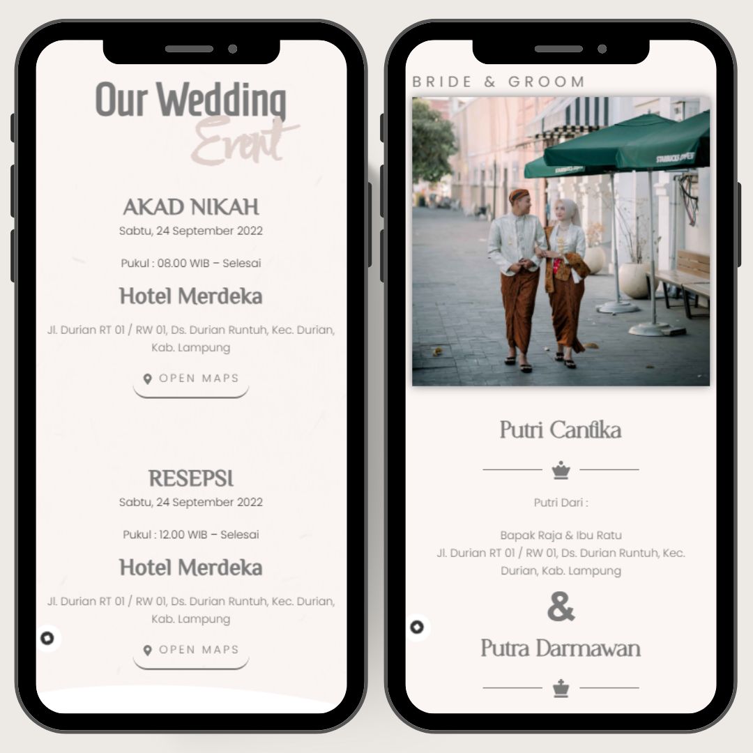 Undangan elegan dan profesional untuk mengekspresikan suasana acara pernikahanmu, dan merupakan cara terbaik untuk berbagi undangan dengan cepat dan simpel di sosial media.